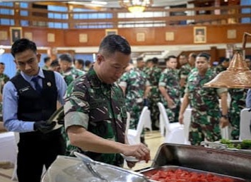 Setelah apel gabungan dilaksanakan, terlihat para prajurit bersalam-salaman dan makan bersama sebagai ungkapan rasa syukur dapat berkumpul kembali.