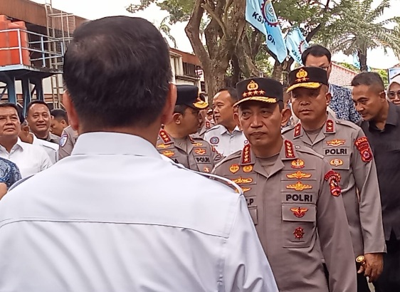 Sigit bersama jajaran pejabat utama Mabes Polri didampingi oleh Presiden KSPSI Andi Gani Nena Wea. Terlihat juga Bupati Tangerang Moch Maesyal Rasyid hingga Kapolda Banten Irjen Hengki.