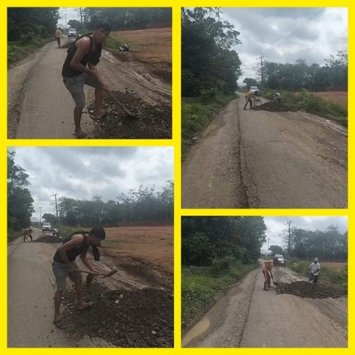 “Sementara kegiatan kerja bakti tersebut melibatkan perangkat desa serta masyarakat setempat”. Dengan cara bergotong royong memperbaiki kondisi jalan yang sebelumnya rusak dan berlumpur.