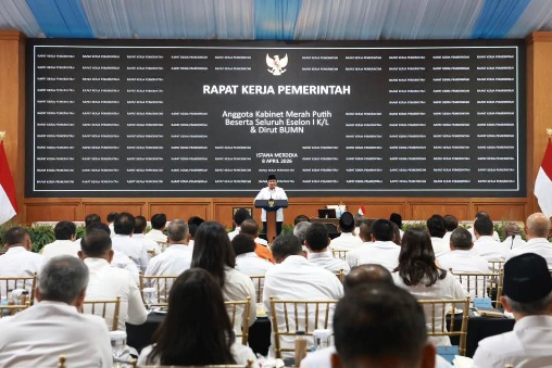 METROINDONEWS.COM, JAKARTA – Mencari solusi dalam ketidak pastian, kemarin di Istana Negara, saya memberikan taklimat. Dalam Rapat Kerja Pemerintah Kabinet Merah Putih bersama seluruh pejabat eselon I kementerian/lembaga serta para direktur utama BUMN, ungkap Presiden RI Prabowo Subianto, Kamis (9/4).